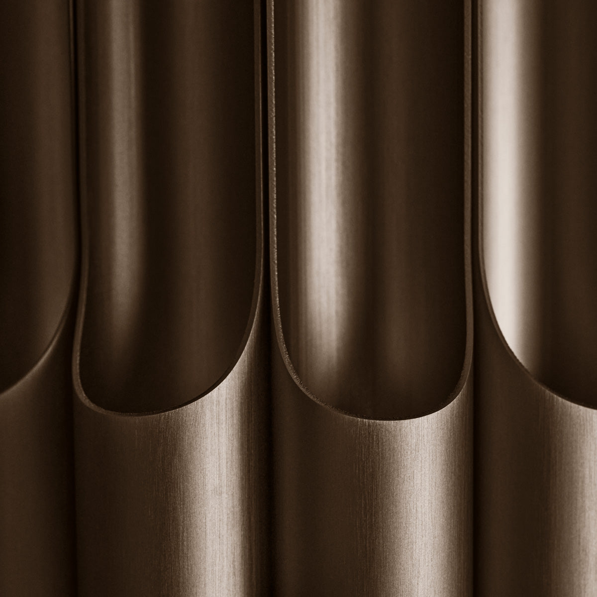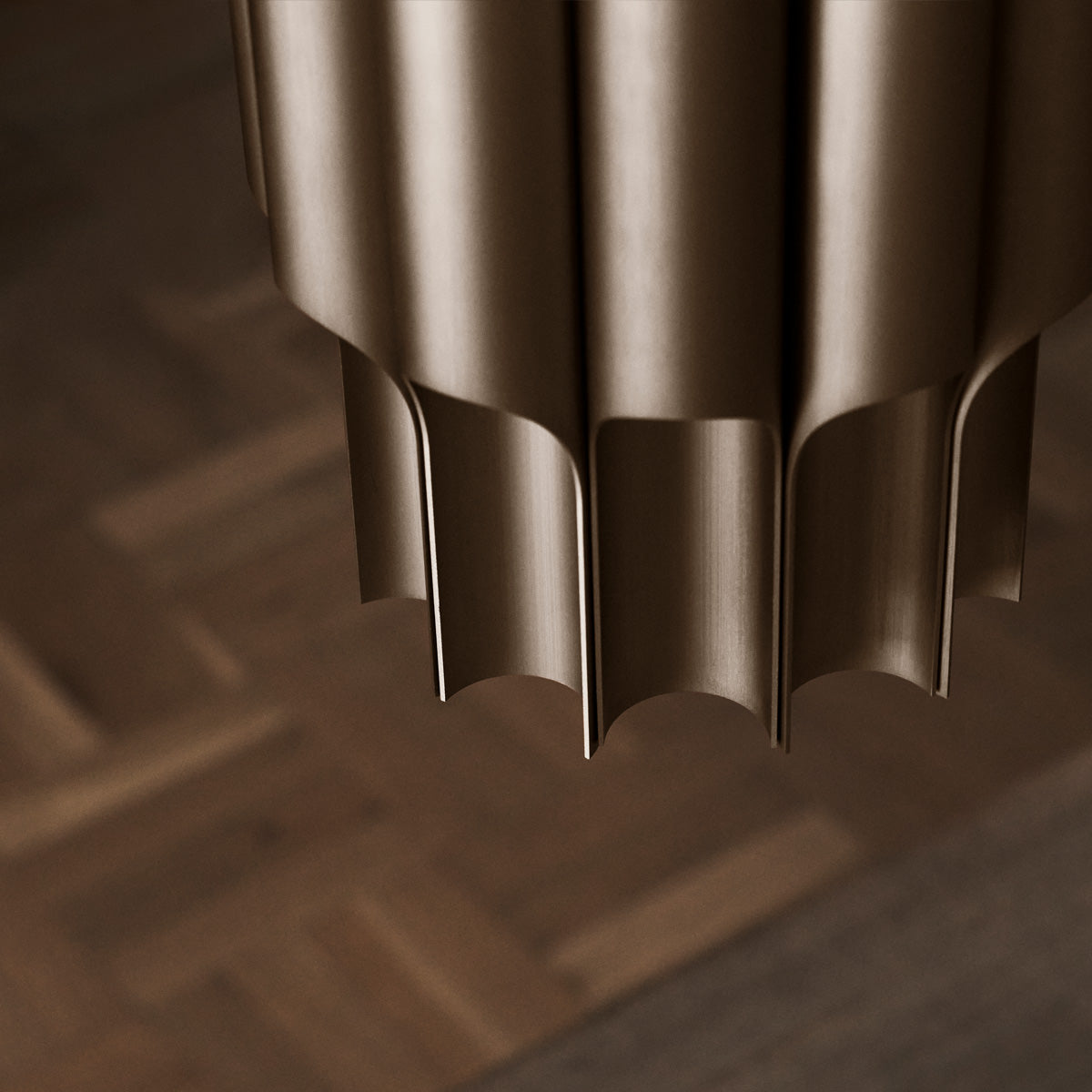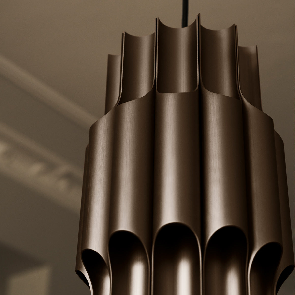 点灯、消灯にかかわらず、存在感を放つアイコニックな「PAN」は照明器具であり、アートでもあります。時代の精神性を捉え、さらに卓越したデザインを生み出すという、ベント・カールビーの特殊な才能が発揮されたコレクションです。アルマイト加工されたアルミニウムのチューブを12本配列して形どったペンダントは内部に樹脂のディフューザーを持ち、そこから透過した光がメタルチューブ上下に流れ出る光のリズムが、このスケール以上の存在感を醸し出しています。その装飾光とは別に、中央開口部から直下への光は確保されます。