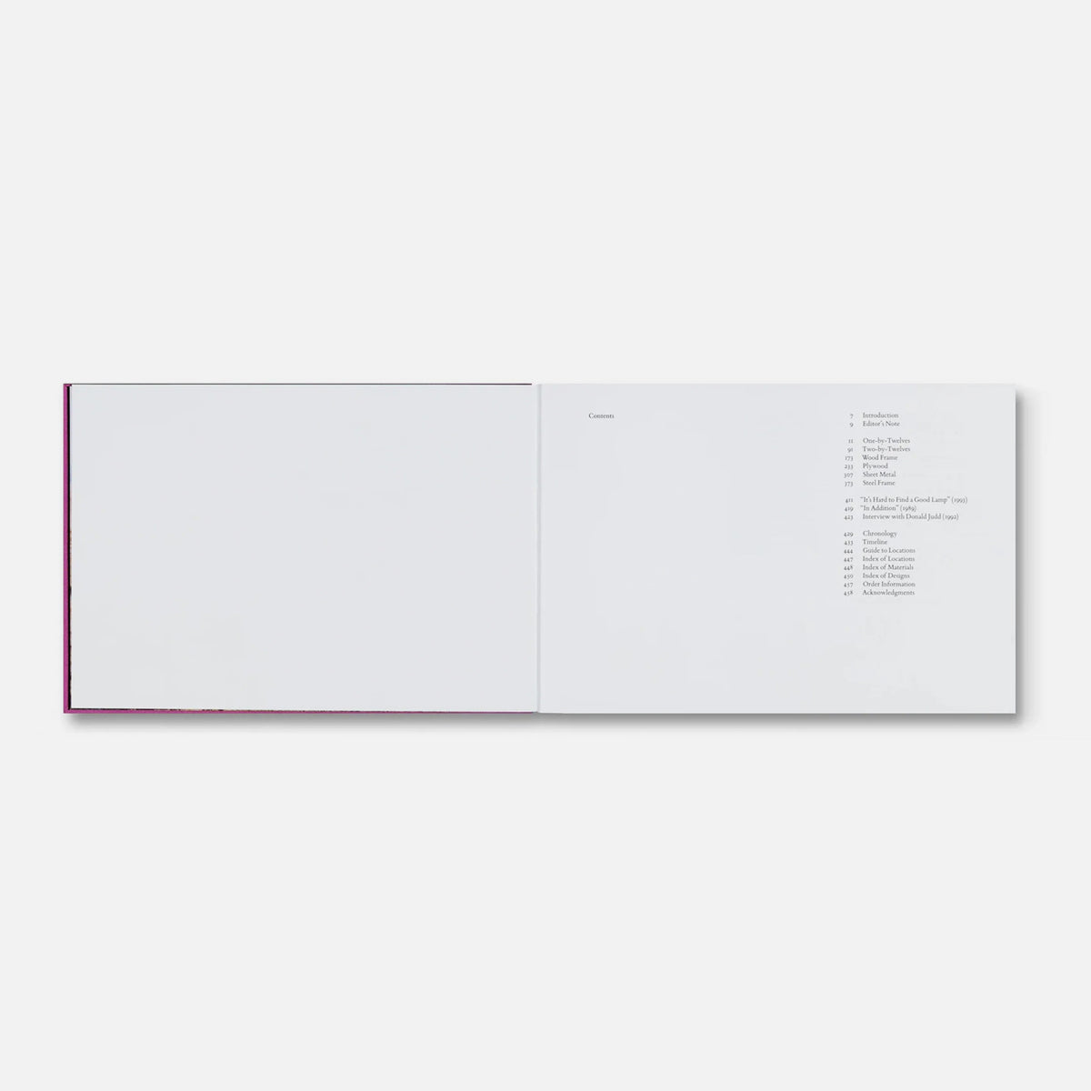 本書は、100点以上におよぶ作者のデザインによる家具を収録する。1970年から1991年までの間にニューヨークのスプリング・ストリートとテキサス州プレシディオ郡に建つ自宅と作業空間用に制作されたものである。家具はスプリング・ストリートの自宅兼スタジオ「101 Spring Street」の改築時に着手され、その後テキサス州マーファに建つ自邸の家具制作に苦心した結果生まれた家具のデザインを紹介している。