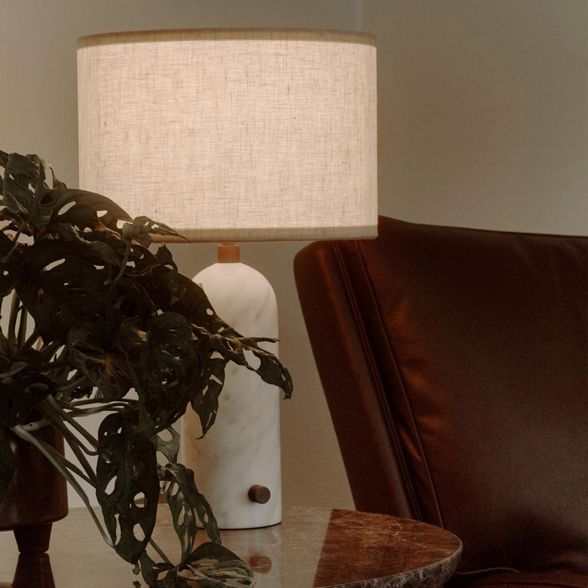 GUBI Gravity Table Lamp Small White Marble Canvas Shade