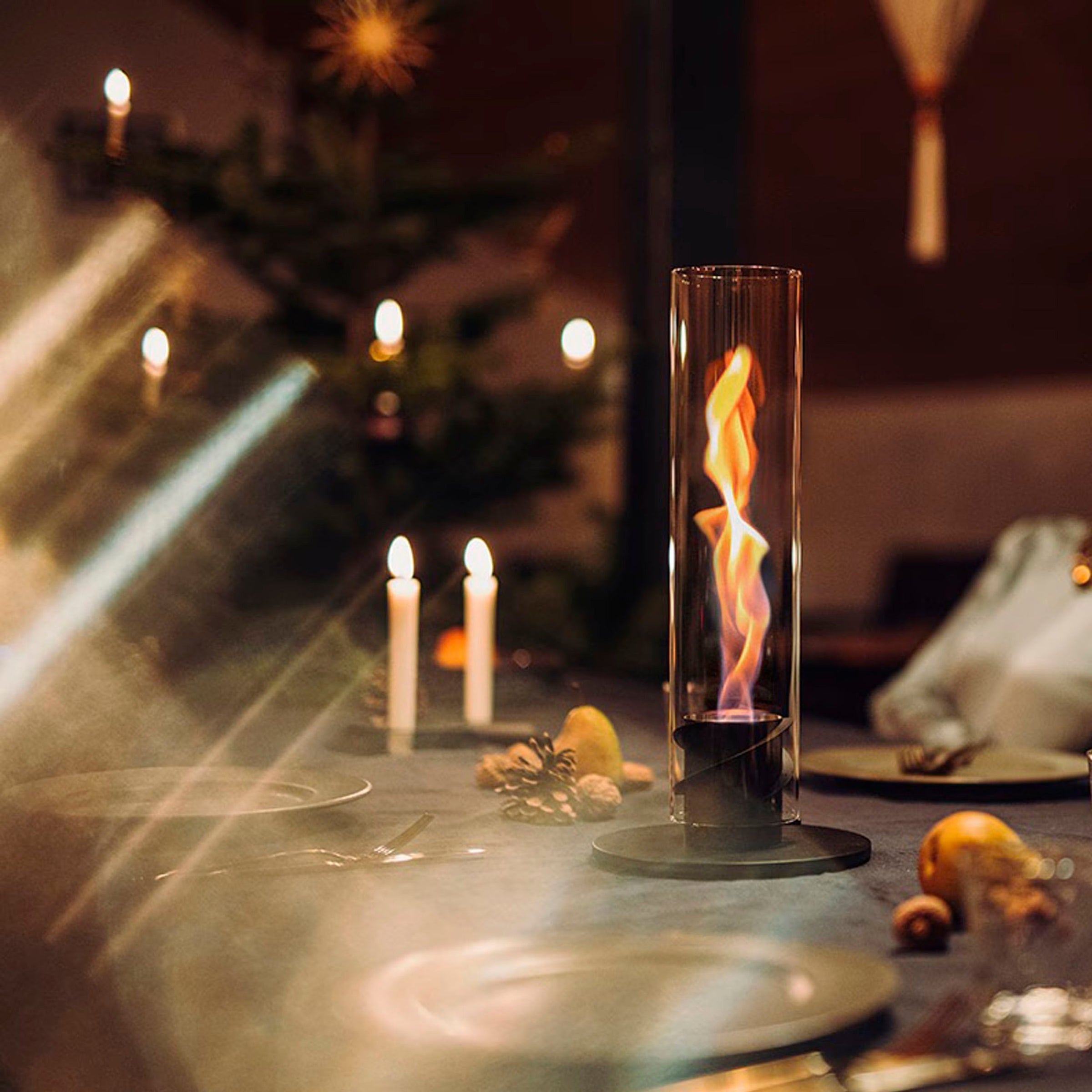ガラスシリンダーの中に炎が美しく渦を巻いて立ち上がるよう設計されたSPINシリーズ。旋回する炎が、キャンプファイヤーのように、美しく、うねり、揺らめきます。