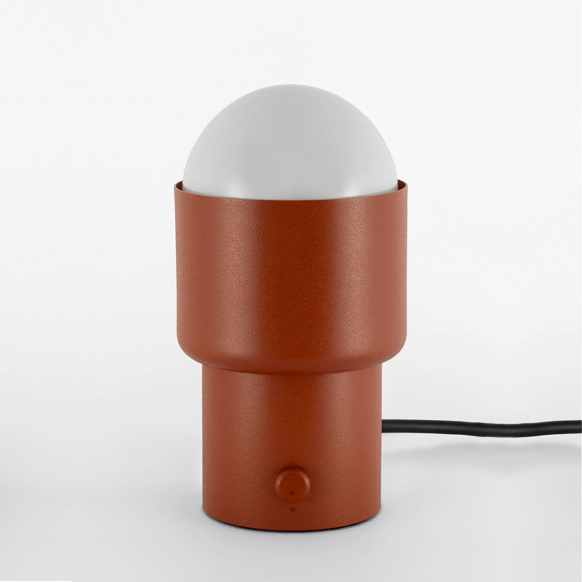 2024年にプロトタイプとして発表した「HALF」は、住空間のためにデザインされた壁付け照明を、より身近なプロダクトとして再構築したテーブルランプで、ガラス製のボール球の素朴でアノニマスな美しさを造形に取り入れています。